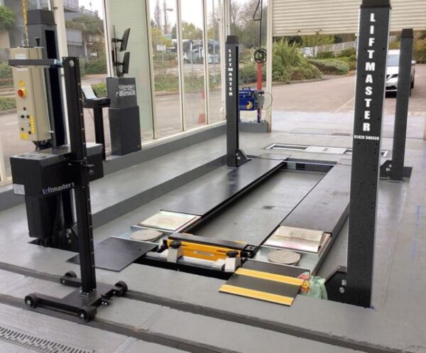 - 5 tonne 4 Post Lift, equipped with radius plates, hydraulic play detector plates, inspection lamp